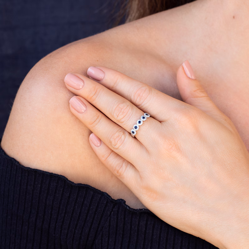 Shy Creation Sapphire Ring 1/8 ct tw Diamonds 14K White Gold SC55003012