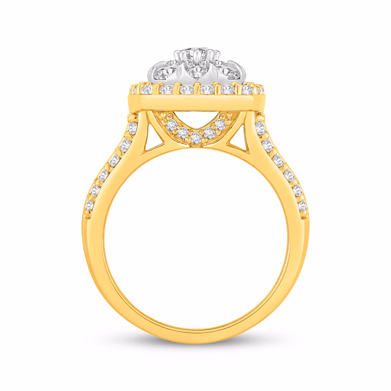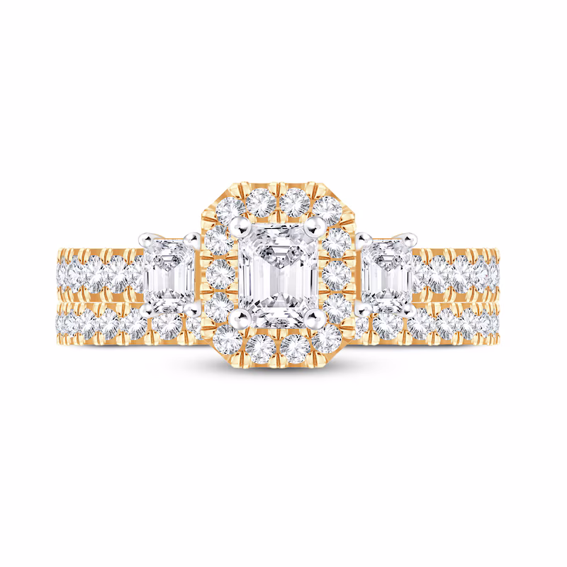Diamond Bridal Set 1-1/2 ct tw Emerald/Round-cut 14K Yellow Gold