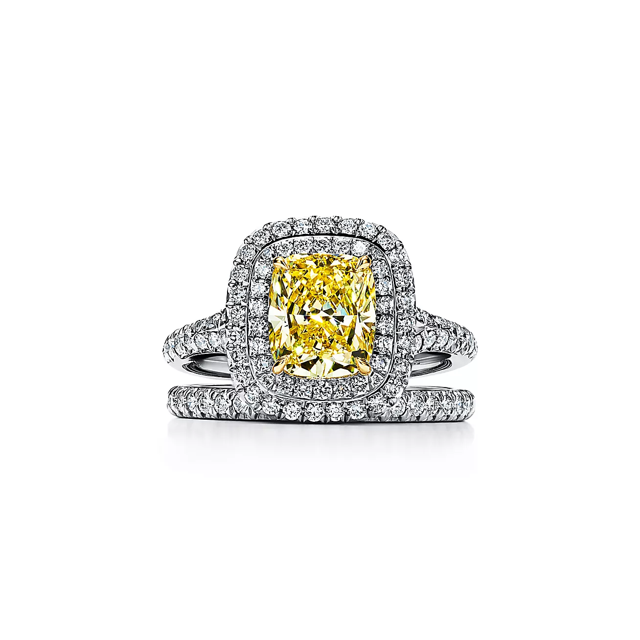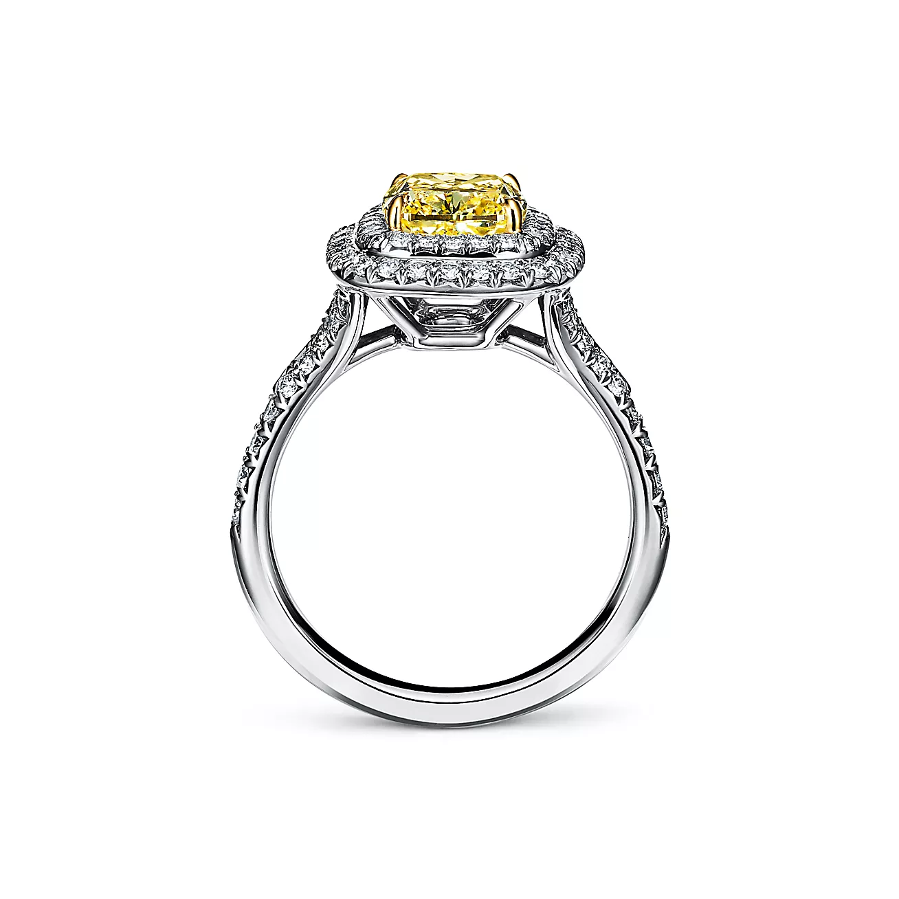 Tiffany Soleste Platinum Cushion-Cut Yellow Diamond Halo Engagement Ring