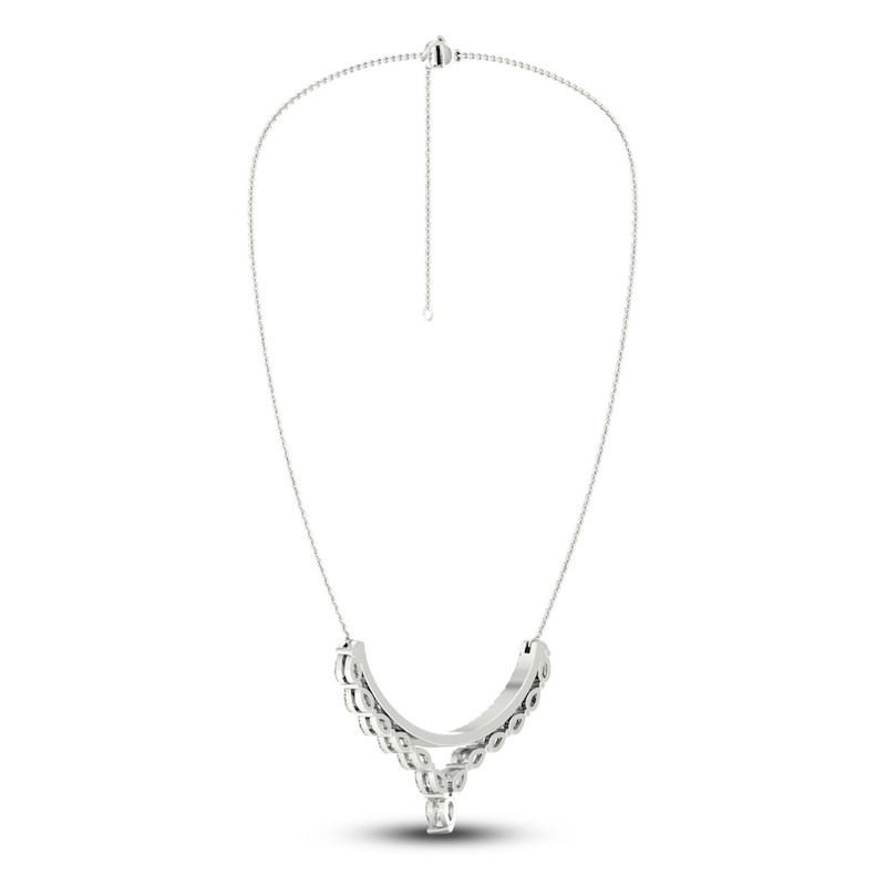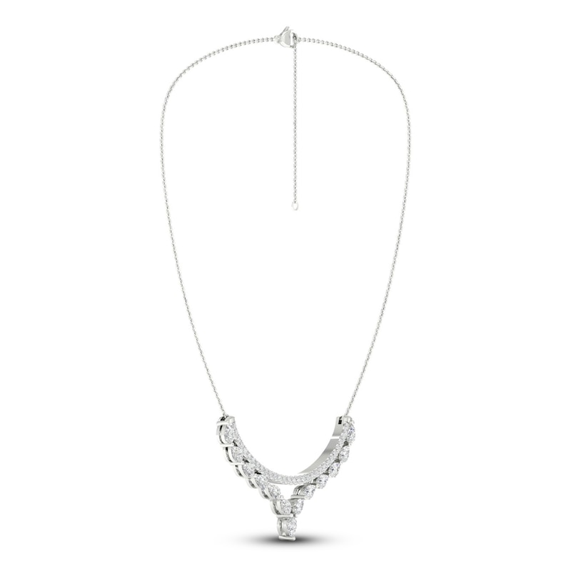 Diamond Double Row V Necklace 2 ct tw Pear & Round-cut White Gold Plated