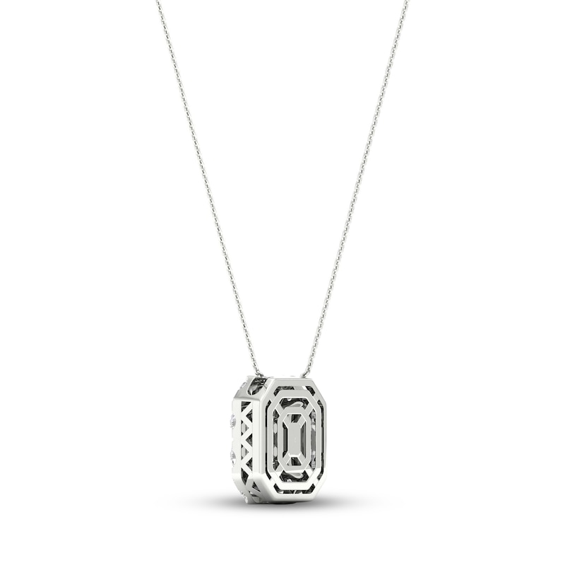 Diamond Necklace 2 ct tw Emerald & Round-cut White Gold Plated 18"