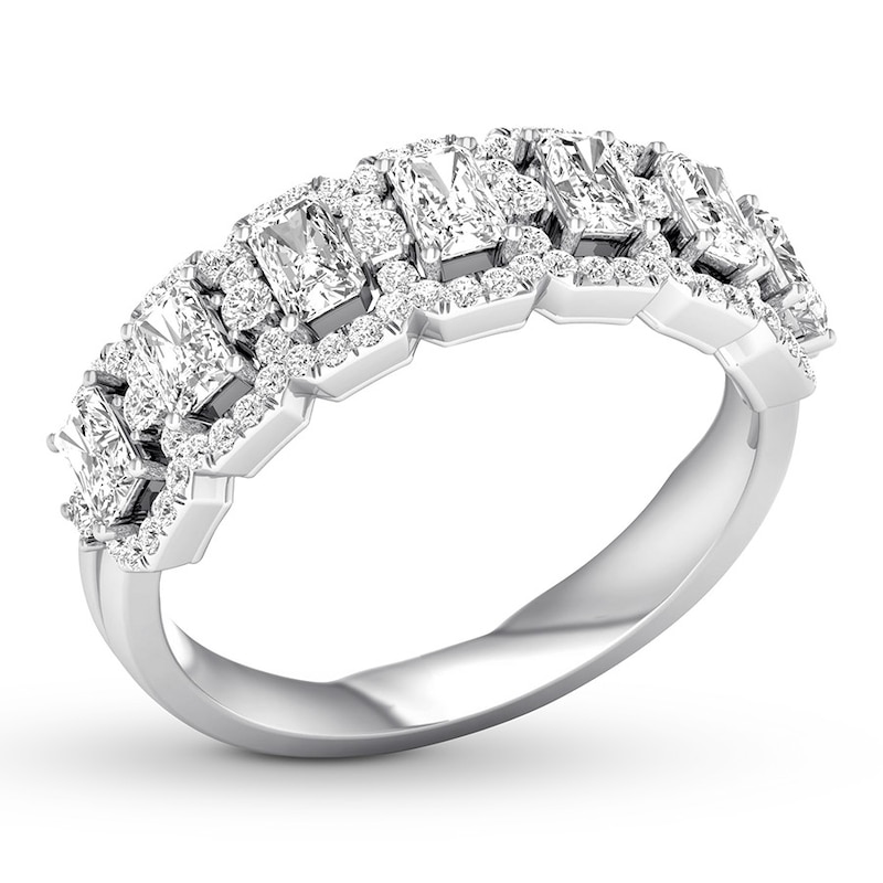 Emerald-cut Diamond Anniversary Band 1-1/3 ct tw White Gold Plated