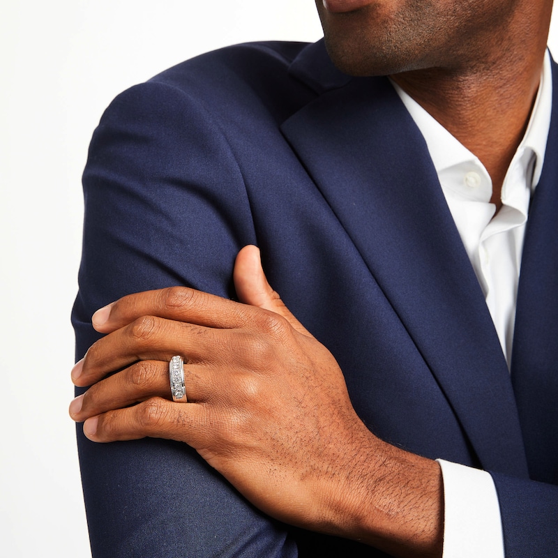 Men's THE LEO Ideal Cut Diamond Wedding Band 3/4 ct tw White Gold Plated