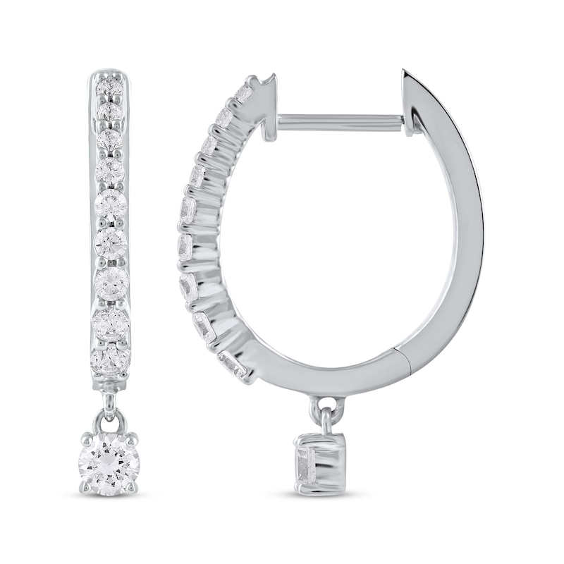 Unstoppable Love Diamond Hoop Dangle Earrings 3/4 ct tw White Gold Plated