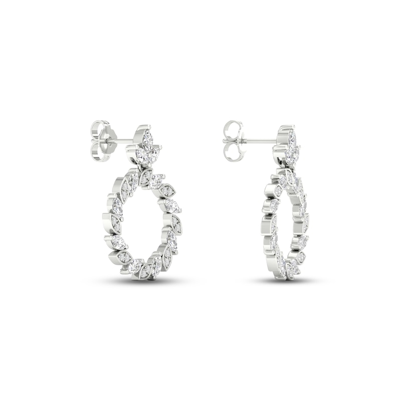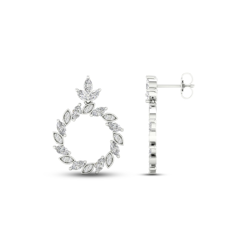 Diamond Circle Earrings 1-1/2 ct tw Marquise & Round-cut White Gold Plated