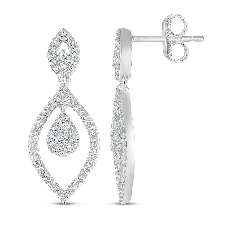 Multi-Diamond Marquise Dangle Earrings 1/2 ct tw White Gold Plated