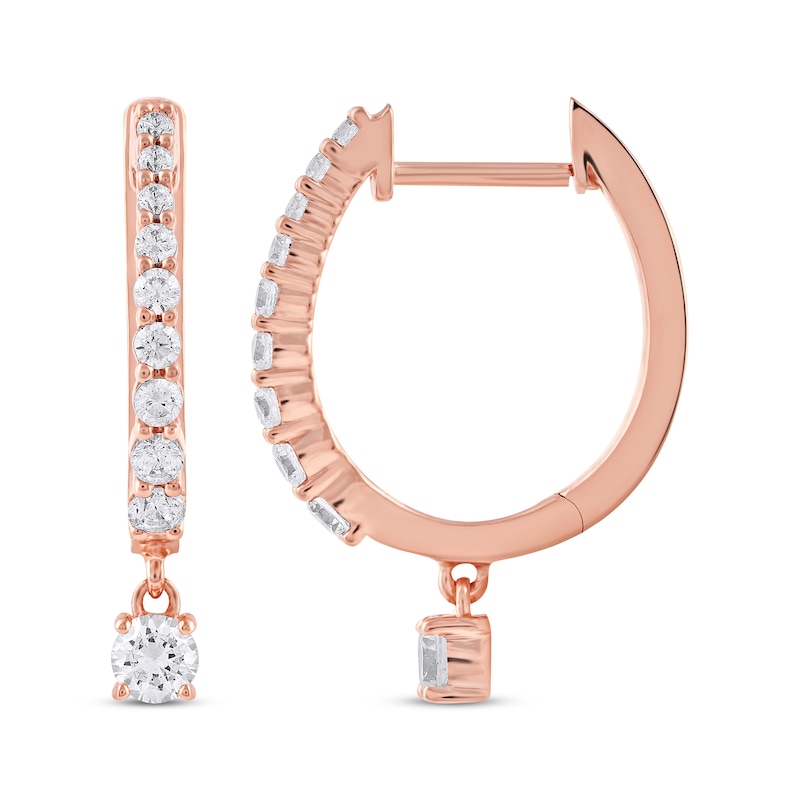 Unstoppable Love Diamond Hoop Dangle Earrings 3/4 ct tw Rose Gold Plated