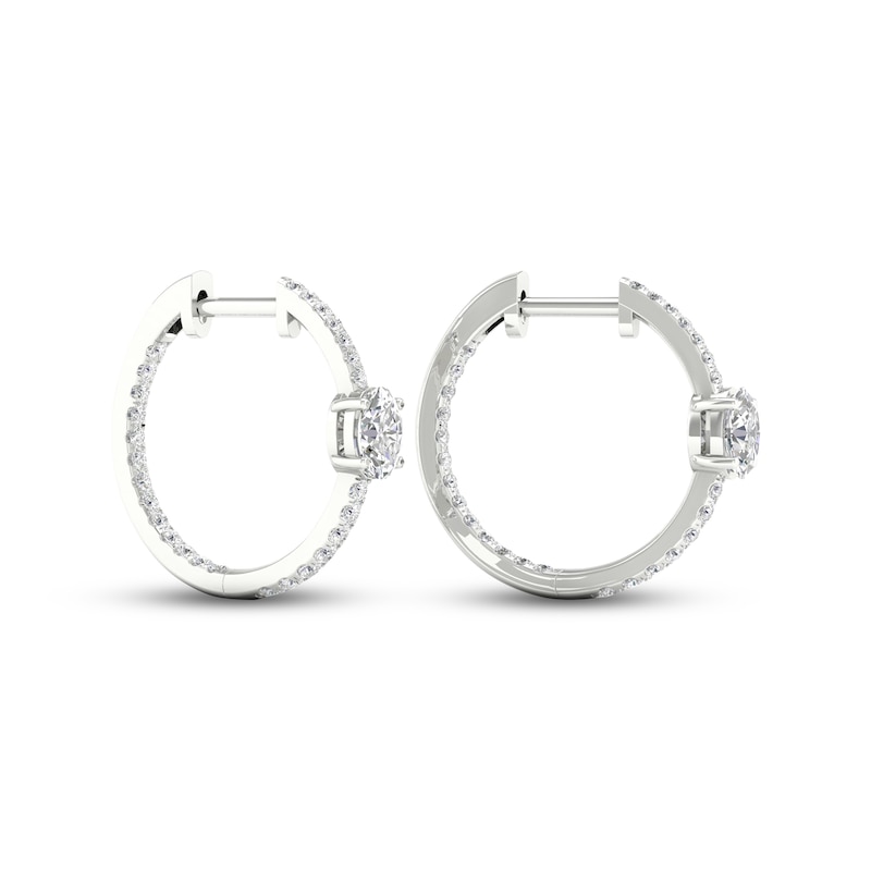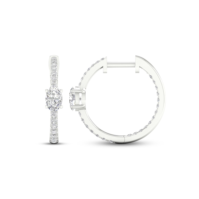 Diamond Huggie Hoop Earrings 1 ct tw Oval & Round-cut White Gold Plated