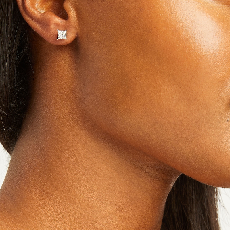 Diamond Solitaire Stud Earrings 1-1/4 ct tw Princess-cut White Gold Plated