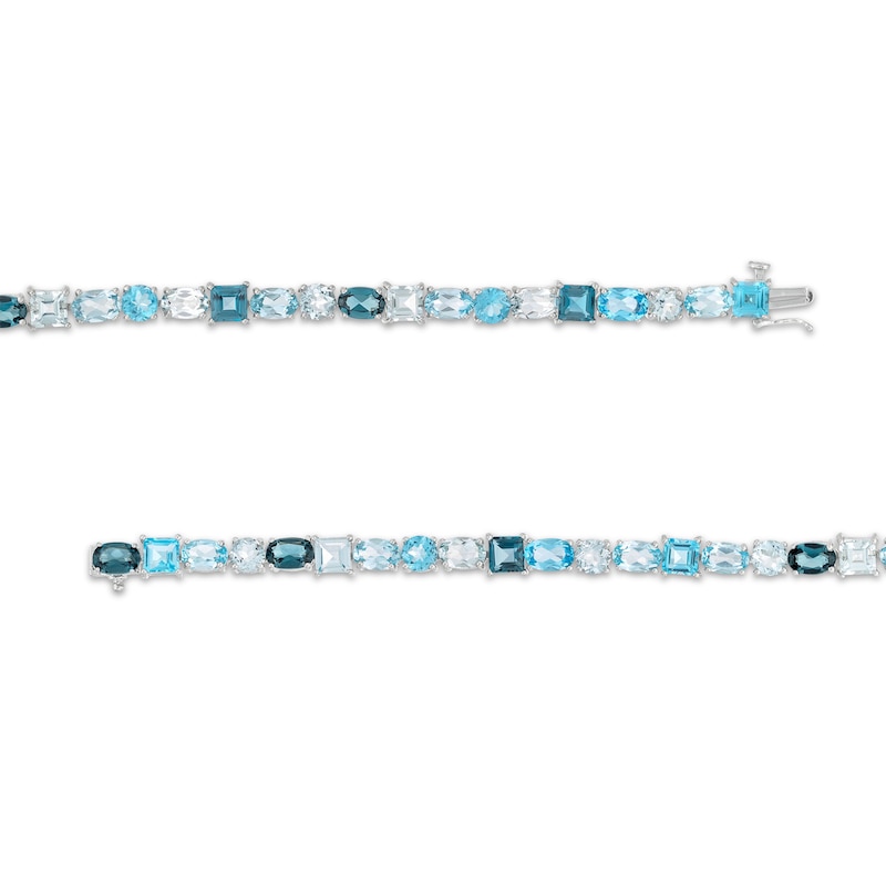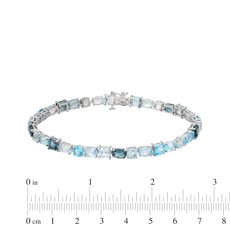 Blue Sapphire Bolo Bracelet 3/8 ct tw Diamonds White Gold Plated 6.5"