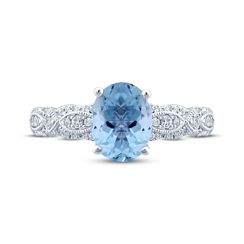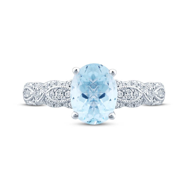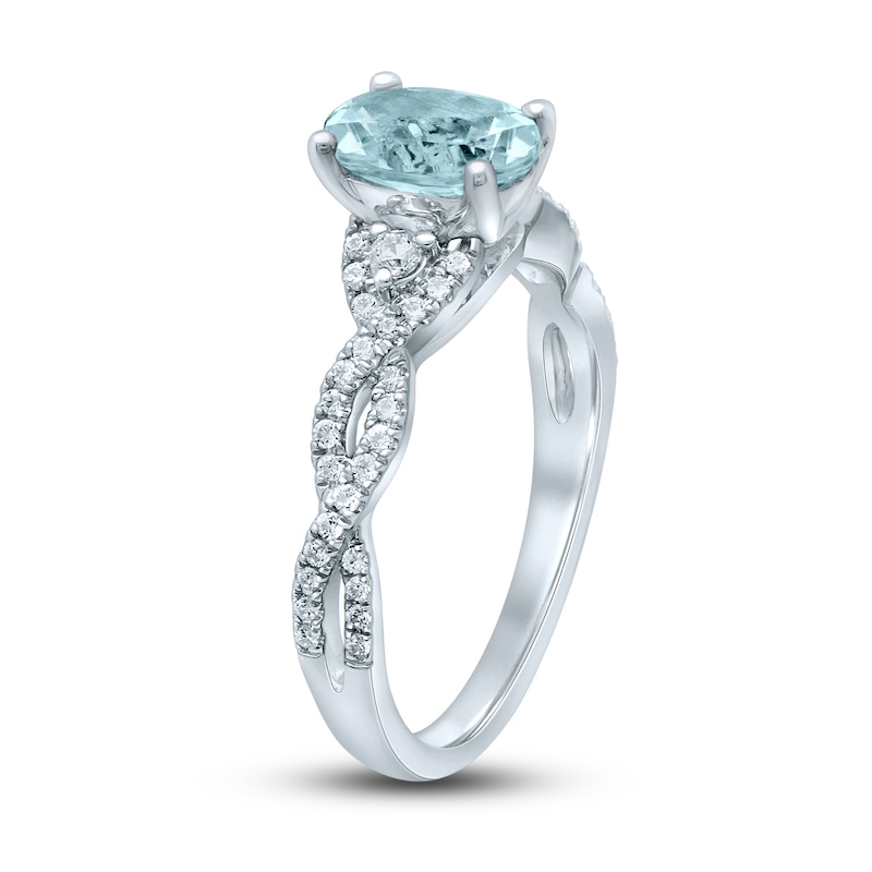Oval Aquamarine Engagement Ring 1/4 ct tw Diamonds White Gold Plated