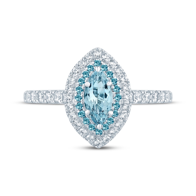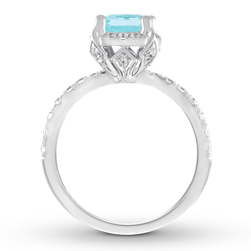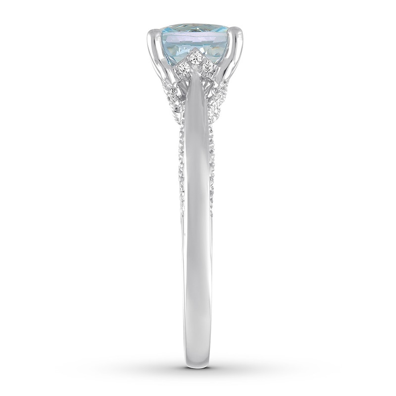 Aquamarine Engagement Ring 1/4 ct tw Diamonds White Gold Plated