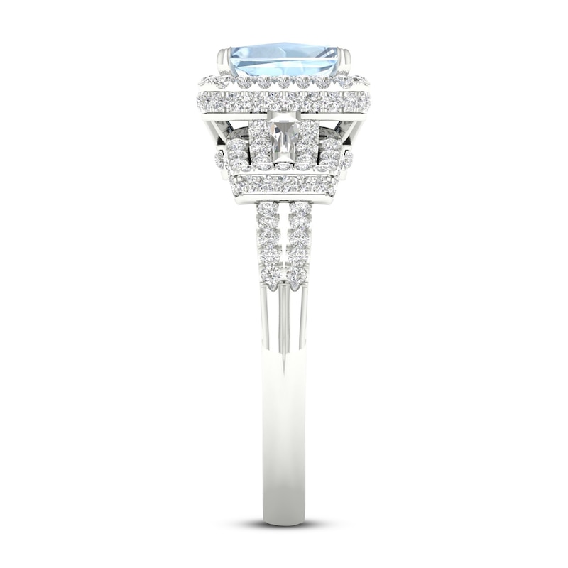 Aquamarine Engagement Ring 1/2 ct tw Diamonds White Gold Plated