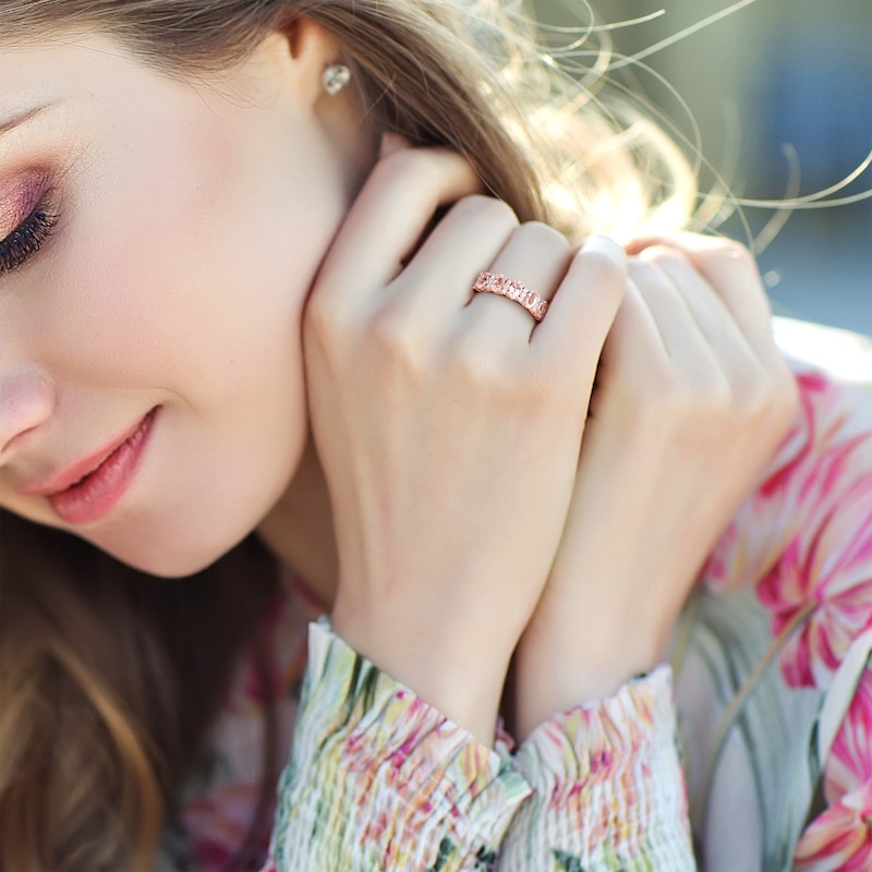Morganite & Diamond Anniversary Band 1/6 ct tw Round-cut Rose Gold Plated