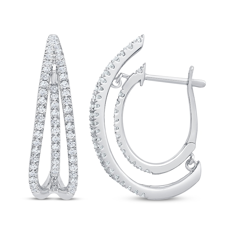 Unstoppable Love Diamond Double Hoop Earrings 1/4 ct tw White Gold Plated