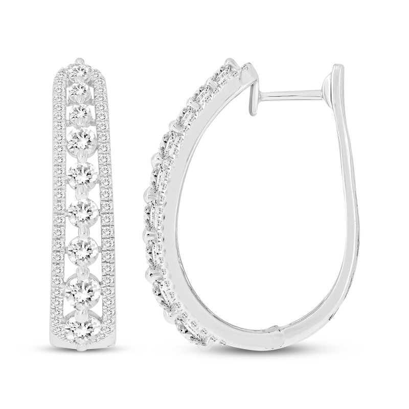 Diamond Large Hoop Earrings 1 ct tw Round-cut White Gold Plated