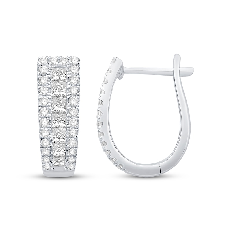 Princess & Round-Cut Diamond Tapered Hoop Earrings 1 ct tw White Gold Plated