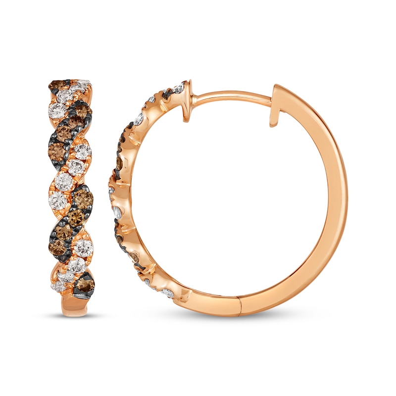 Le Vian Ombre Hoop Earrings 2 cttw Diamonds Strawberry Gold Plated