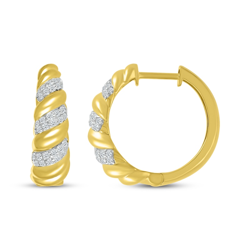 Round-Cut Diamond Spiral Hoop Earrings 3/8 ct tw Yellow Gold Plated
