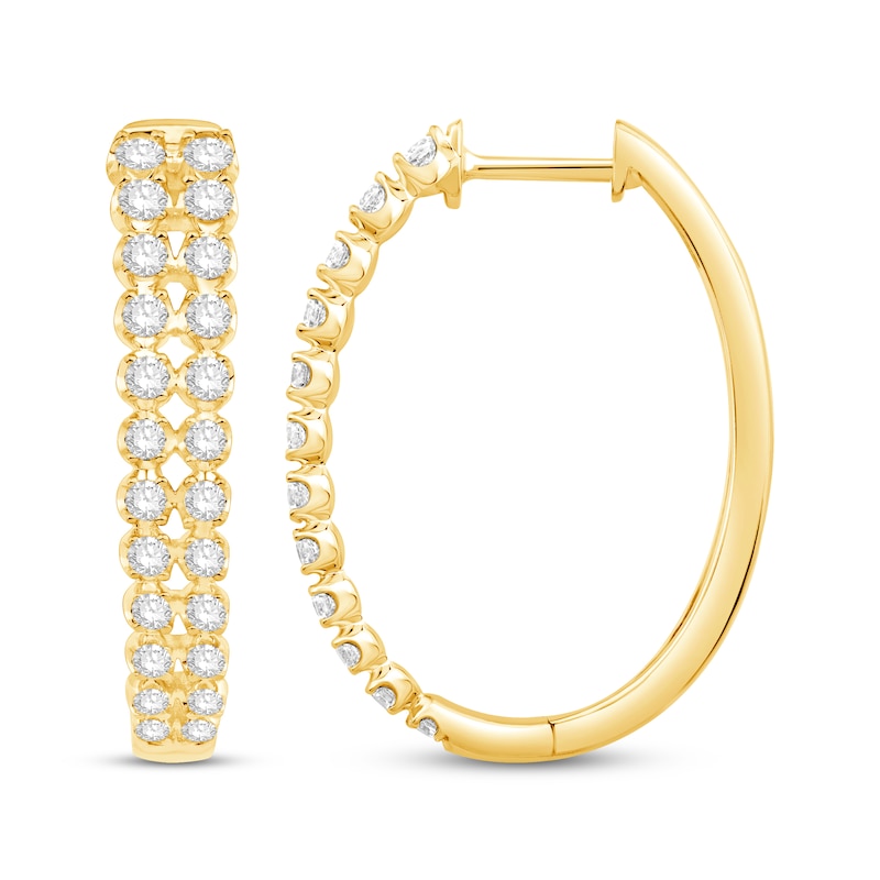 Men's Three-Row Huggie Hoop Earrings 1 ct tw Round-cut Yellow Gold Plated