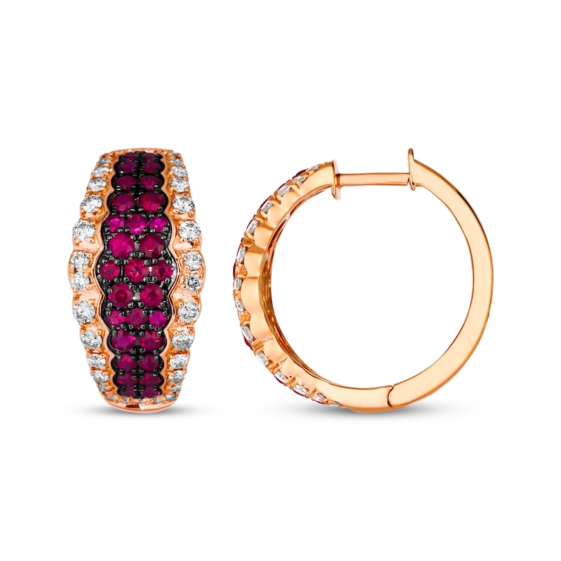 Le Vian Ruby Hoop Earrings 7/8 ct tw Diamonds Strawberry Gold Plated