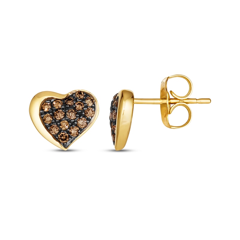 Godiva x Le Vian Diamond Heart Earrings 1/4 ct tw Honey Gold Plated