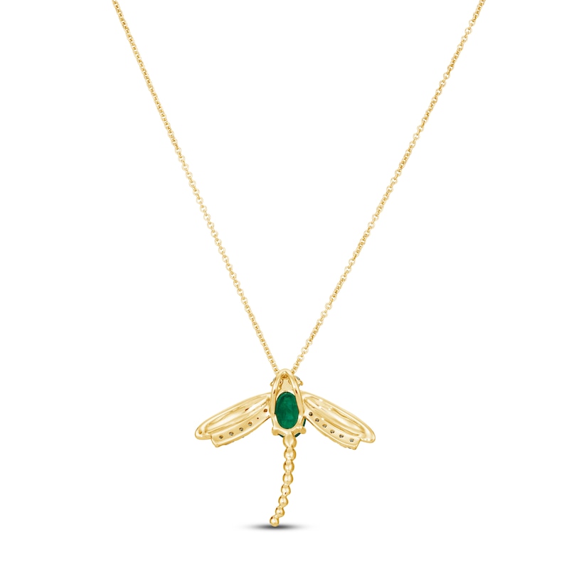 Le Vian Emerald Dragonfly Necklace 1/5 ct tw Diamonds Honey Gold Plated 18"