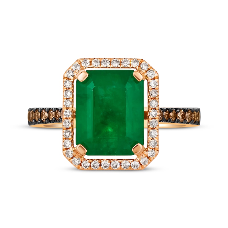 Le Vian Emerald-Cut Emerald Ring 3/8 ct tw Diamonds Strawberry Gold Plated