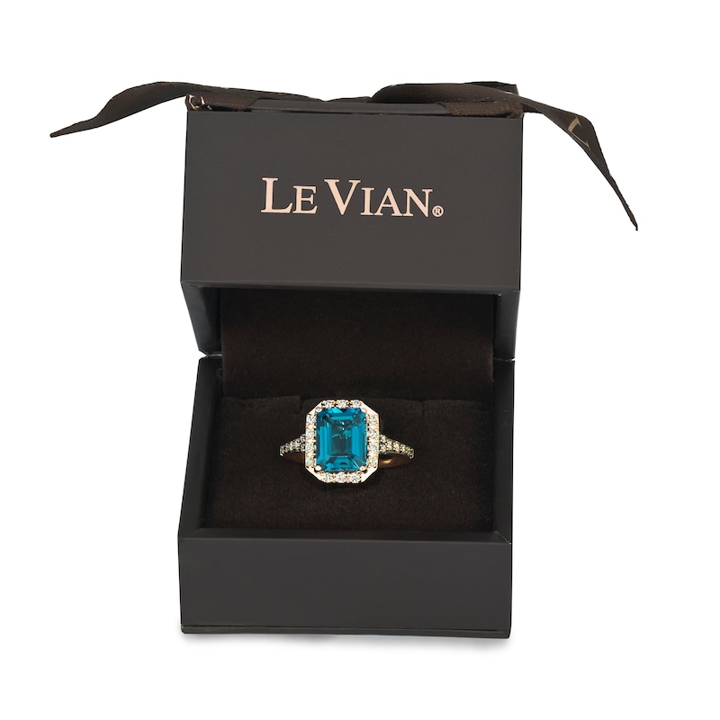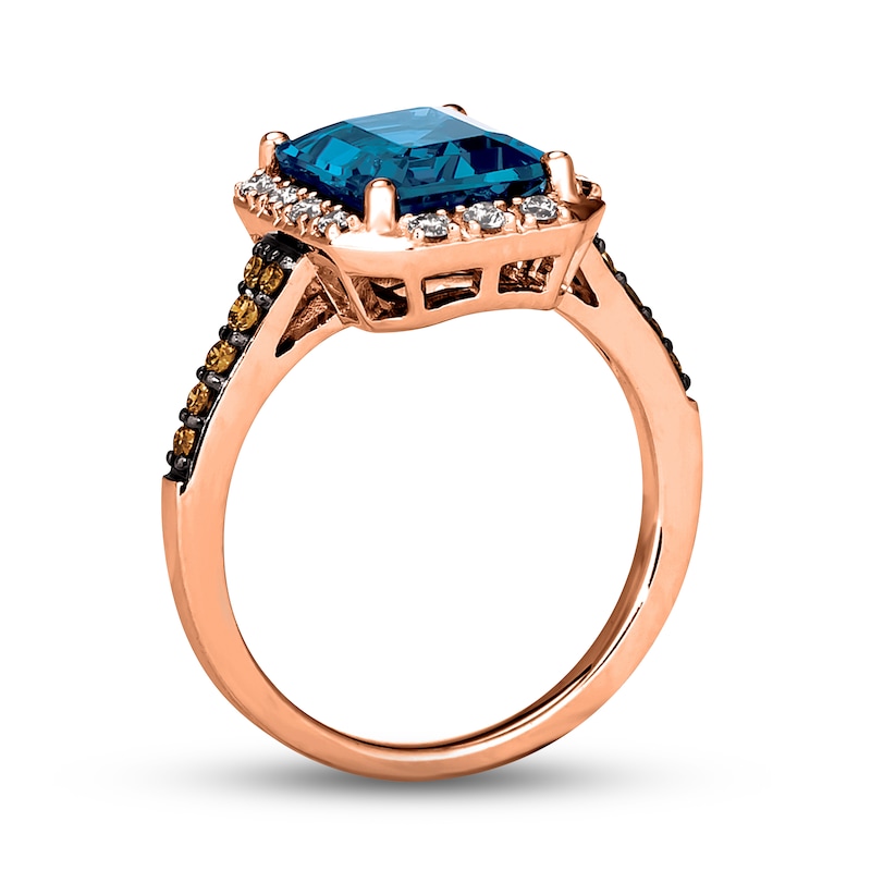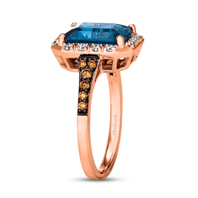 Le Vian Diamond & Blue Topaz Ring 3/8 ct tw Diamonds Strawberry Gold Plated