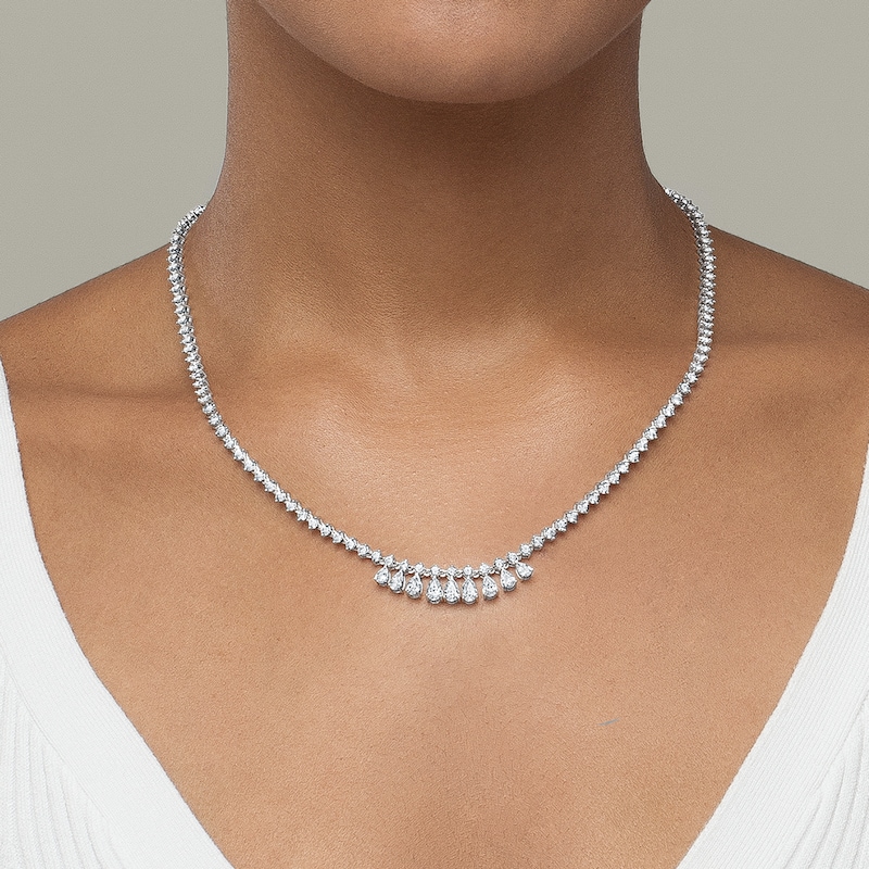 Diamond Riviera Necklace 10 ct tw Pear-Shaped White Gold Plated 18"