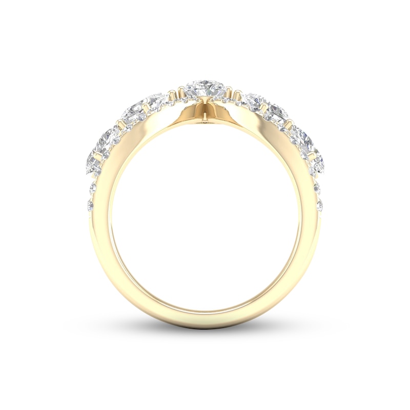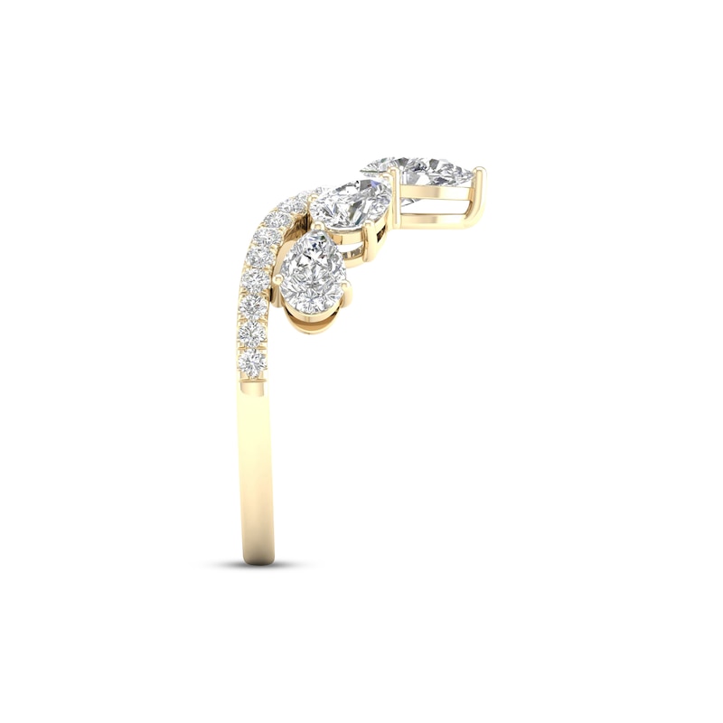 Diamond V Ring 1-1/2 ct tw Pear & Round-cut Yellow Gold Plated