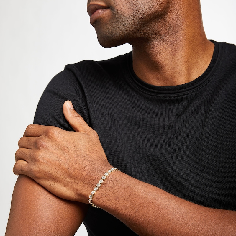Men's Diamond Tennis Bracelet 2 ct tw Round-cut Yellow Gold Plated 8.5"