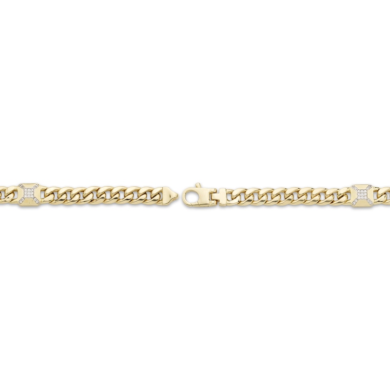 Men's Diamond Station Link Bracelet 7/8 ct tw Yellow Gold Plated 8.5"