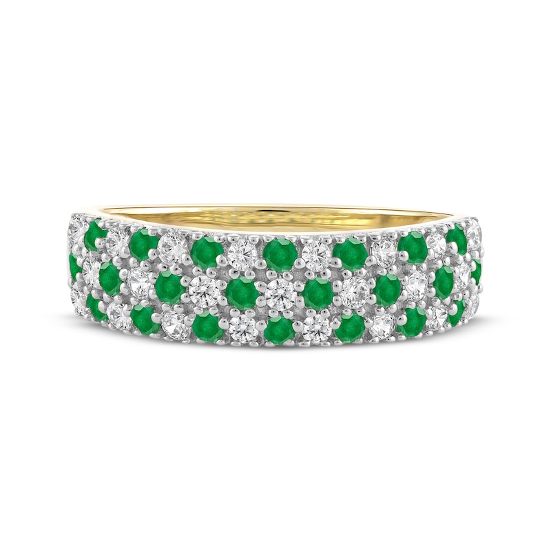 Emerald & Diamond Checkerboard Ring 3/8 ct tw Yellow Gold Plated