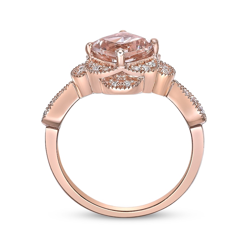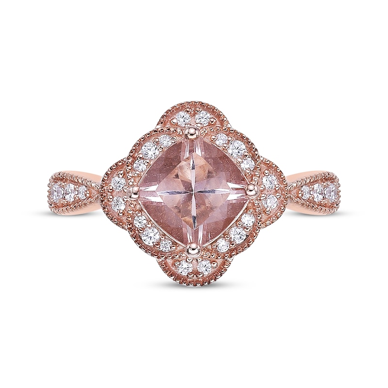 Cushion-Cut Morganite & Diamond Ring 1/6 ct tw Rose Gold Plated