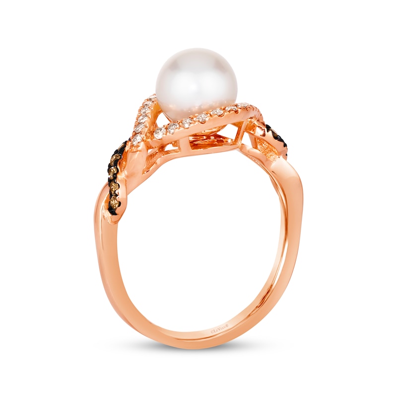 Le Vian Cultured Pearl Ring 1/4 ct tw Diamonds Strawberry Gold Plated