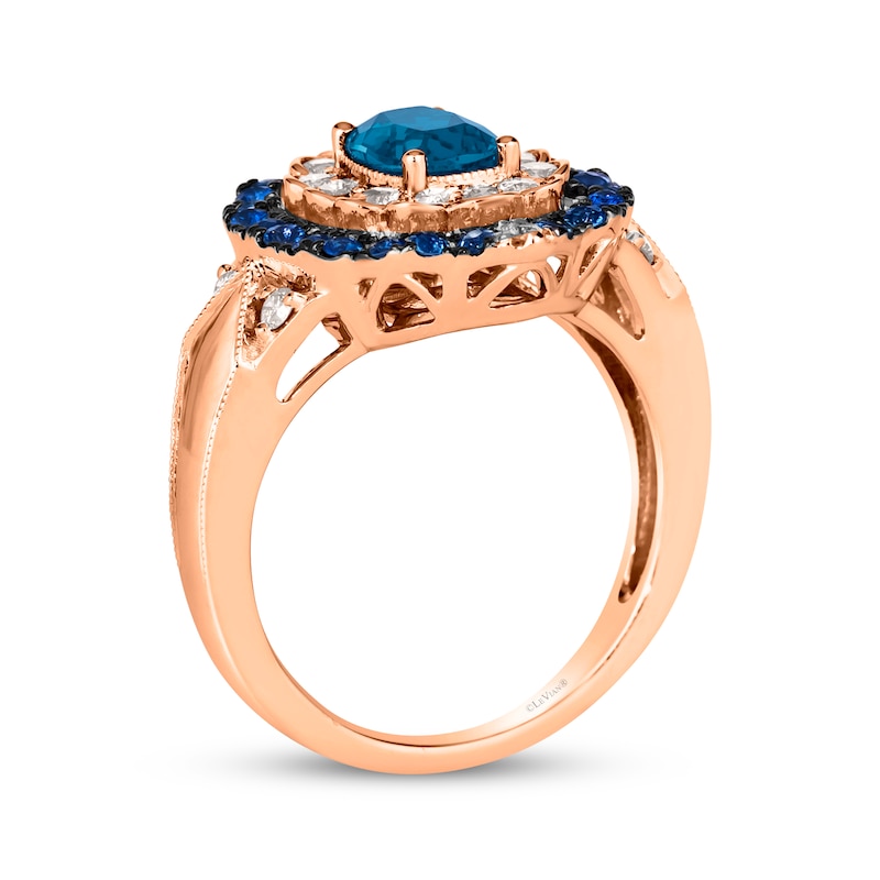 Le Vian Blue Topaz Ring 1/8 ct tw Diamonds Vanilla Gold Plated