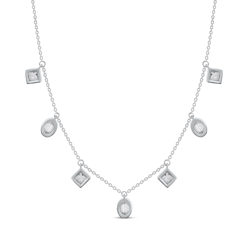 Oval & Princess-Cut Diamond Dangle Necklace 1 ct tw White Gold Plated 16"