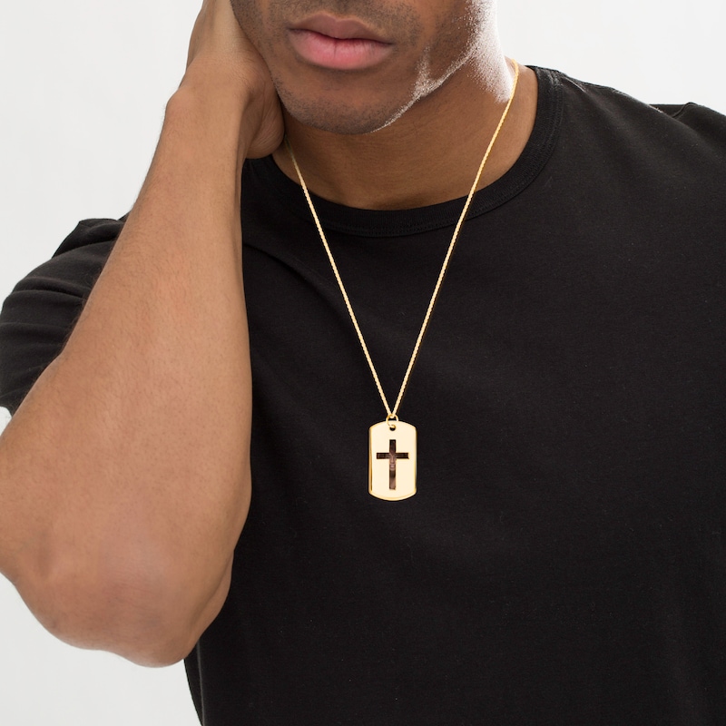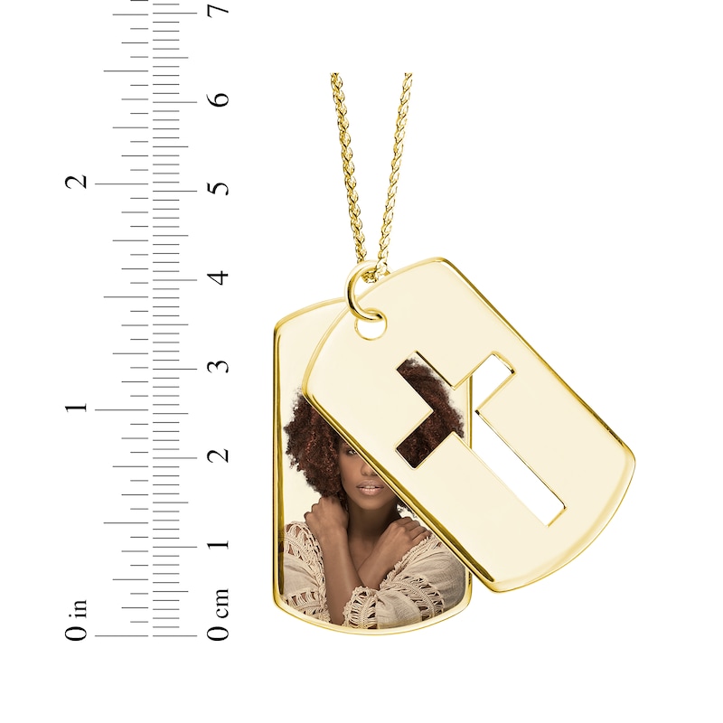 Men's Double Dog Tag Photo & Cross Swivel Necklace Yellow Gold Plated 22"
