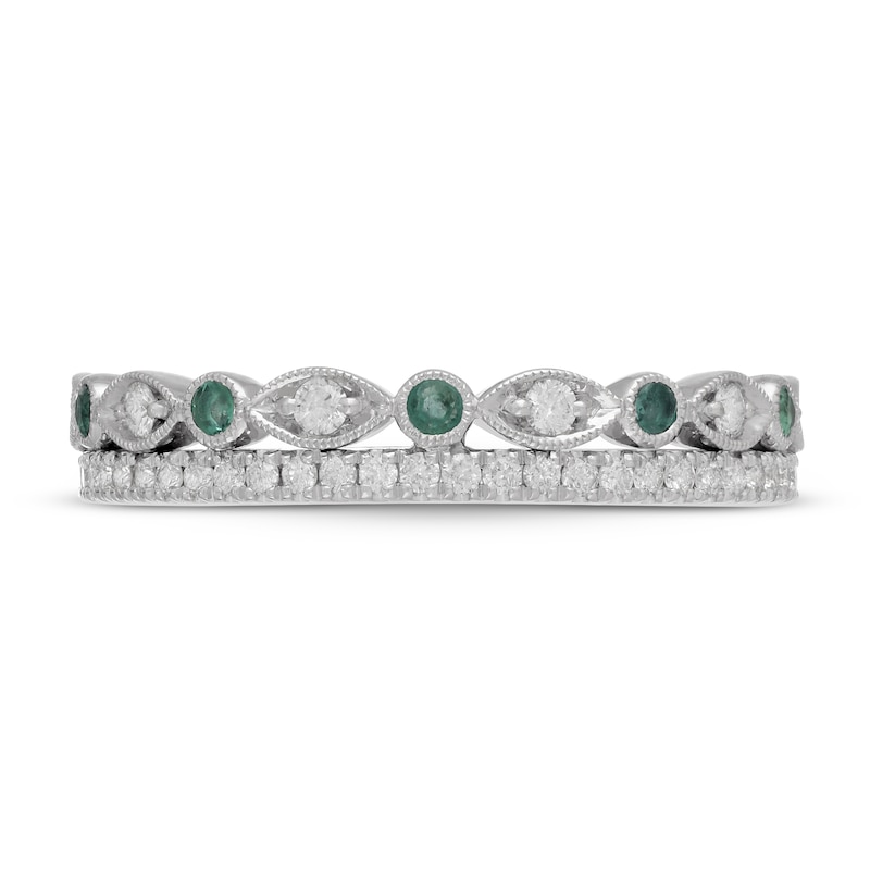 Neil Lane Diamond & Emerald Anniversary Ring 1/4 ct tw White Gold Plated