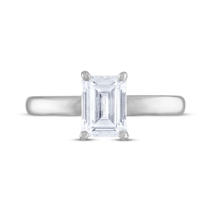 THE LEO Diamond Emerald-Cut Solitaire Engagement Ring 2 ct tw White Gold Plated