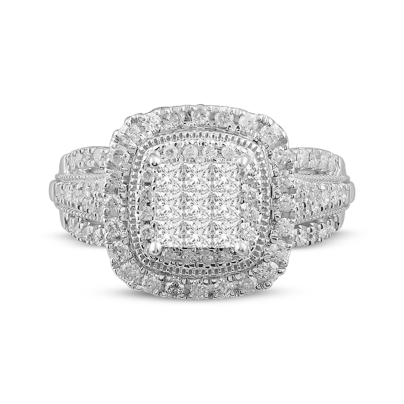 Multi-Diamond Center Princess-Cut Engagement Ring 1 ct tw White Gold Plated
