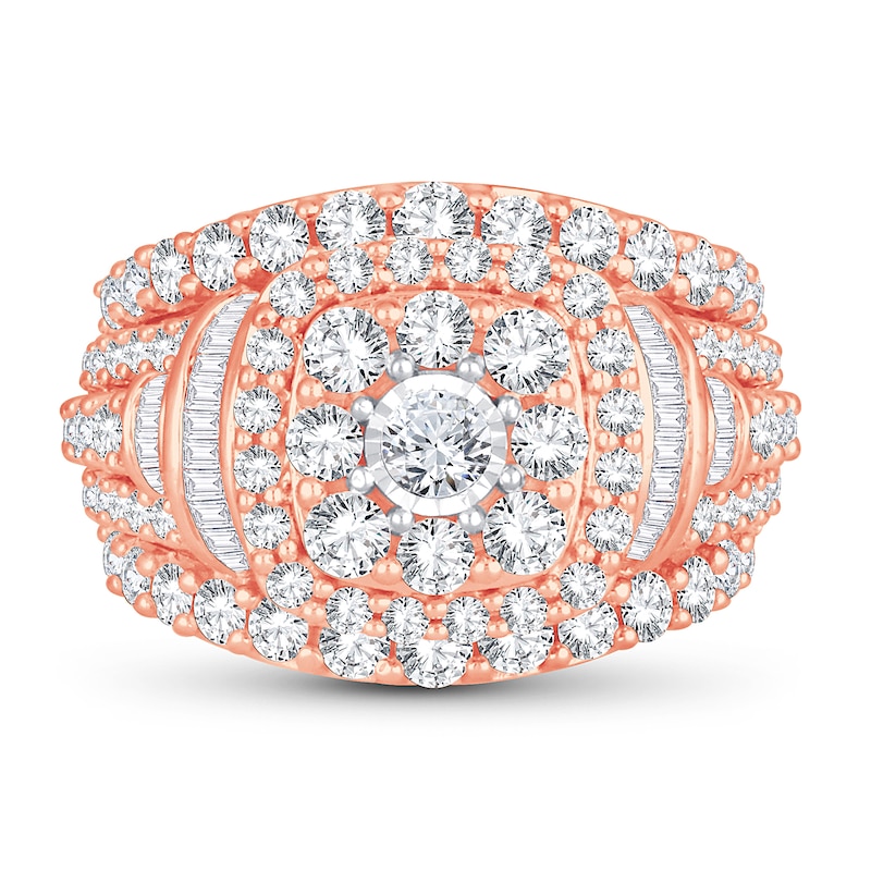 Diamond Engagement Ring 3 ct tw Round & Baguette Rose Gold Plated