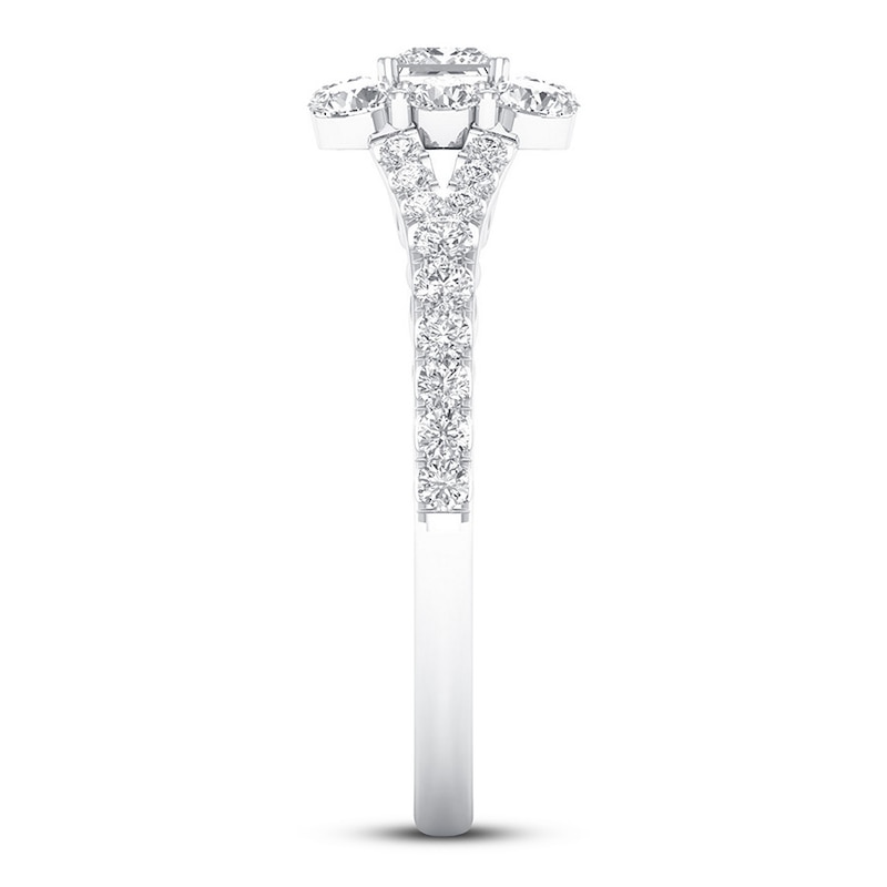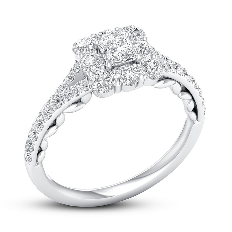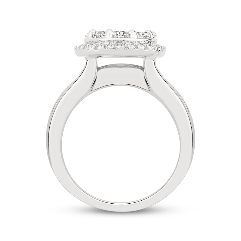 Multi-Diamond Engagement Ring 2 ct tw Round & Baguette White Gold Plated