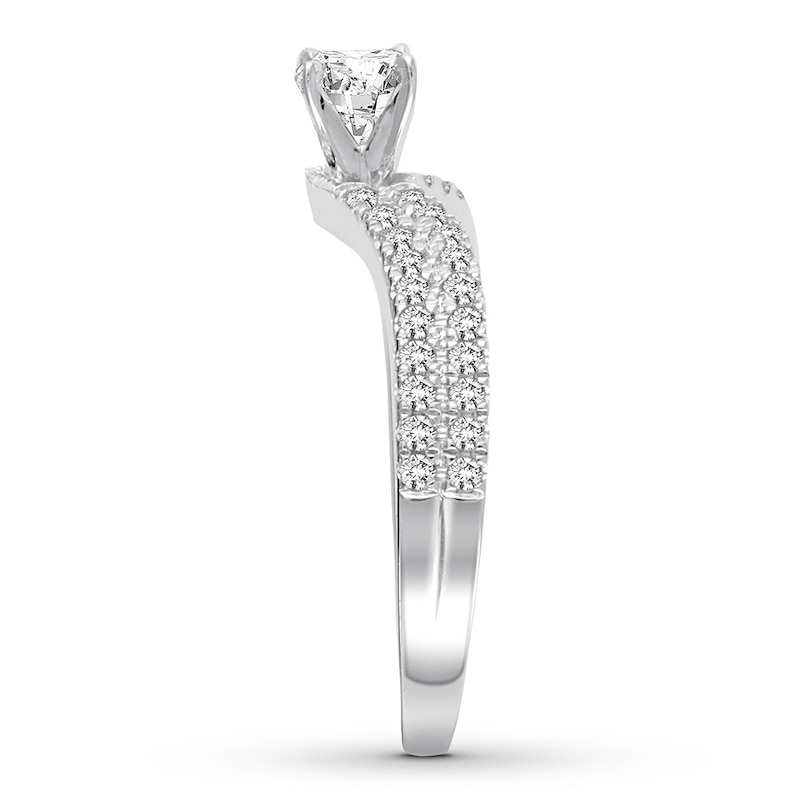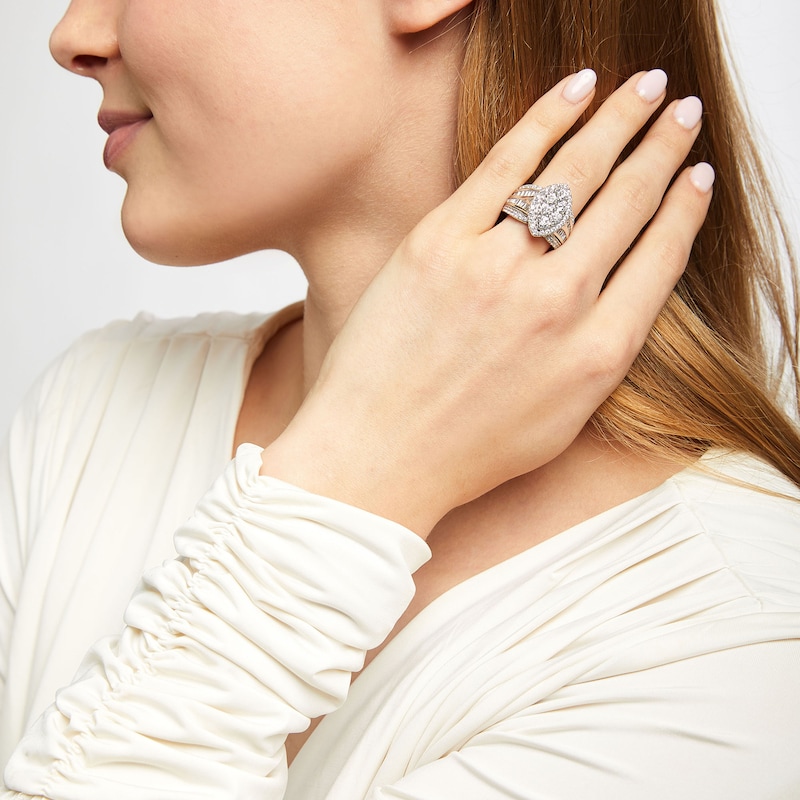 Diamond Engagement Ring 3 ct tw Round & Baguette White Gold Plated