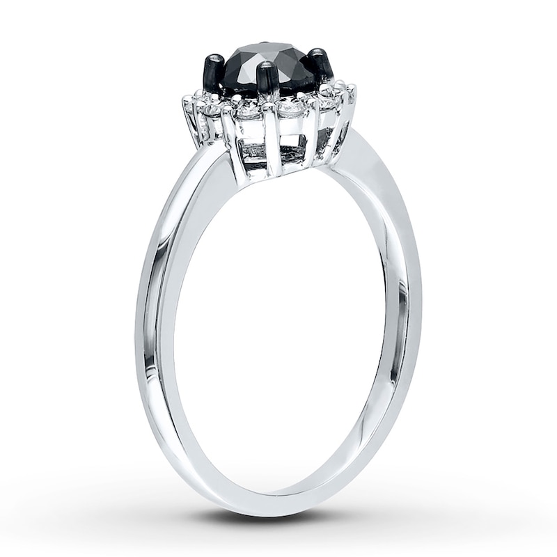 Black & White Diamond Engagement Ring 1 ct tw Round-cut White Gold Plated