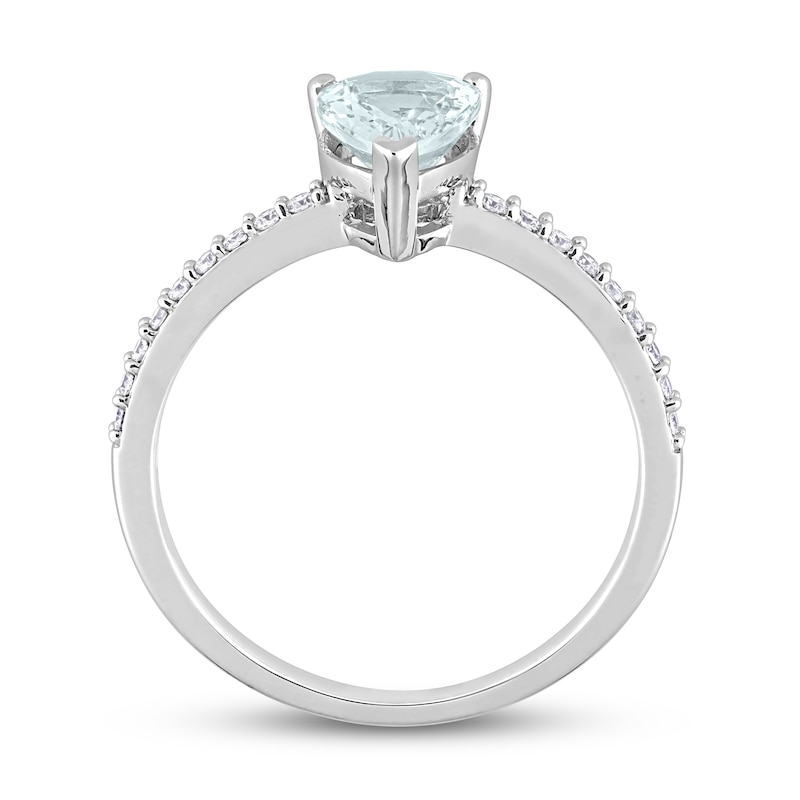 Pear-Shaped Aquamarine Engagement Ring 1/8 ct tw Diamonds White Gold Plated