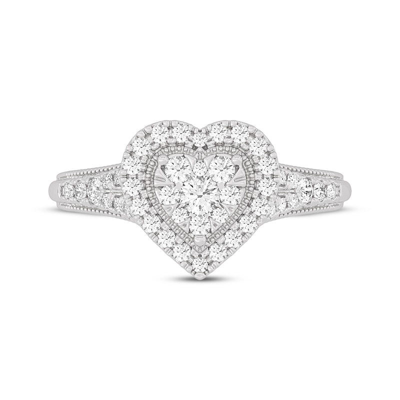 Round-Cut Diamond Heart-Shaped Engagement Ring 1/2 ct tw White Gold Plated