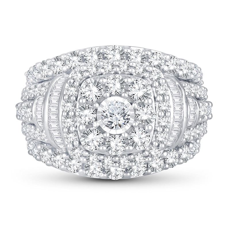 Diamond Engagement Ring 3 ct tw Round & Baguette White Gold Plated