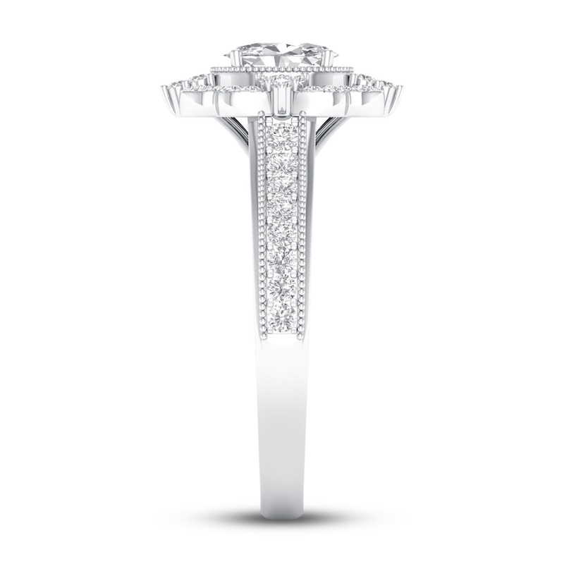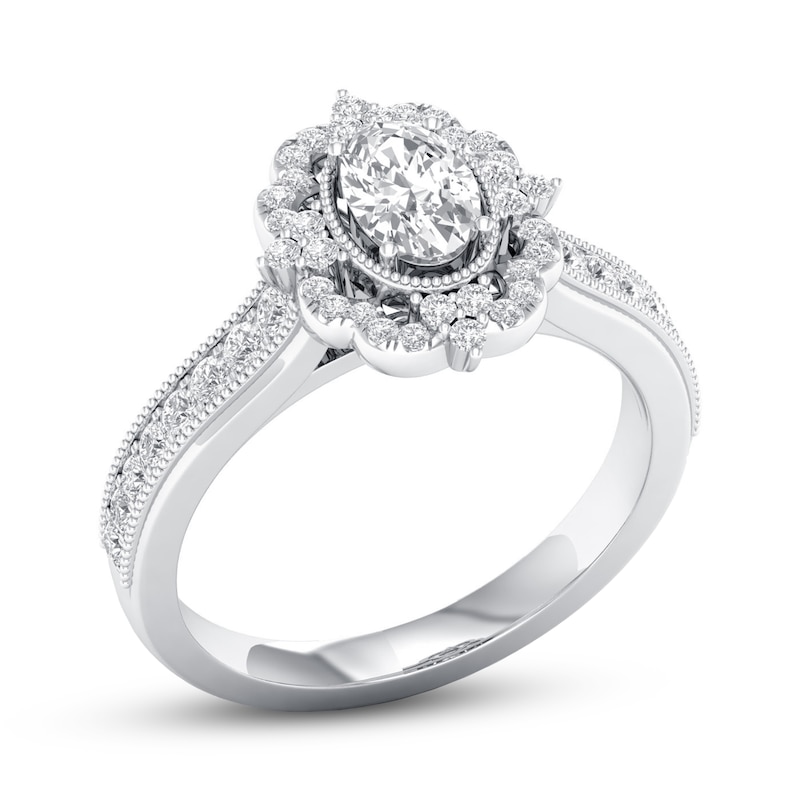 Diamond Engagement Ring 7/8 ct tw Oval & Round-cut White Gold Plated